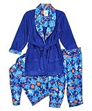 Get your little sports fan ready for a bath and bed with this 3-piece set from Bunz Kidz! Wrap him in the soft microfleece bathrobe, complete with 2 waist pockets and plaid sports-themed print trim on the lapel and cuffs. Then, put him in the PJs: a button-up shirt with an allover plaid sports-themed print, and elastic waist pants with matching print and cuff trim. He'll love the warmth and comfort of this terrific sleepytime outfit! Flame Resistant All Items 100% Polyester Machine Wash Cold, Inside Out Made in China ...Read more